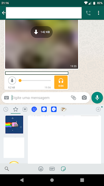 ... você apenas clica na opção "adicionar às favoritas" e verificar na aba de favoritos das figurinhas do Whastapp para confirmar que a figurinha em questão está salva (no caso a figurinha animada do Nyan Cat):